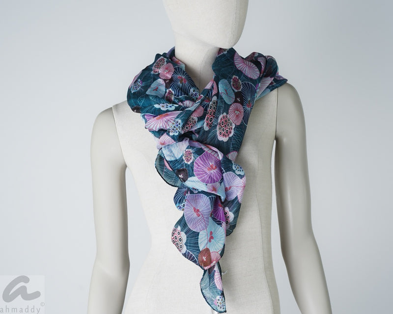 Wunderschöner Schal von Ahmaddy aus 100% Seide in den Farben blau, violett, multi. Größe 100 x 190 cm. Dieser Schal wurde handgefärbt. Unterschiede zwischen verschiedenen Teilen oder eine ungleichmäßige Farboptik kennzeichnen die besondere Verarbeitung. Dry clean only!