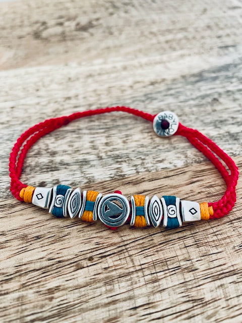 Babylonia LOVE Bracelet aus 935er Silber und rotem Band. Länge 21 cm, individuell veränderbar. Babylonia Schmuck bringt eure Gefühle auf einzigartige Weise zum Ausdruck, mit Symbolen die euren wichtigsten Emotionen und Werten entsprechen. Handmade with Love!