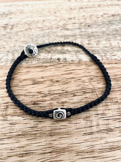 Babylonia SOUL Bracelet aus 935er Silber und schwarzem Band. Länge 21 cm, individuell veränderbar. Handmade with Love!
