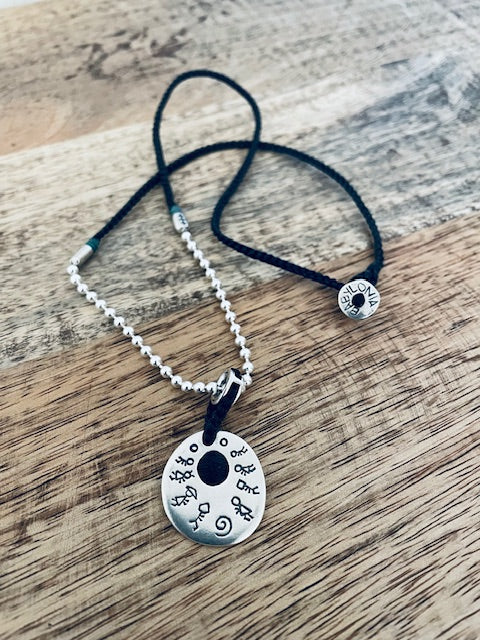 Babylonia Soul & Optimism Necklace aus 935er Silber und schwarzem Band. Länge 50 cm, individuell veränderbar. Handmade with Love!