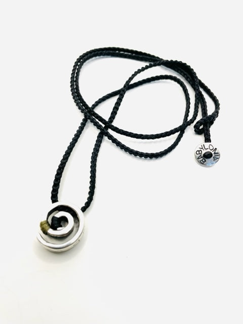 Babylonia Soul Labyrinth Men Necklace aus 935er Silber und schwarzem Band. Länge 62 cm, individuell veränderbar. Handmade with Love.